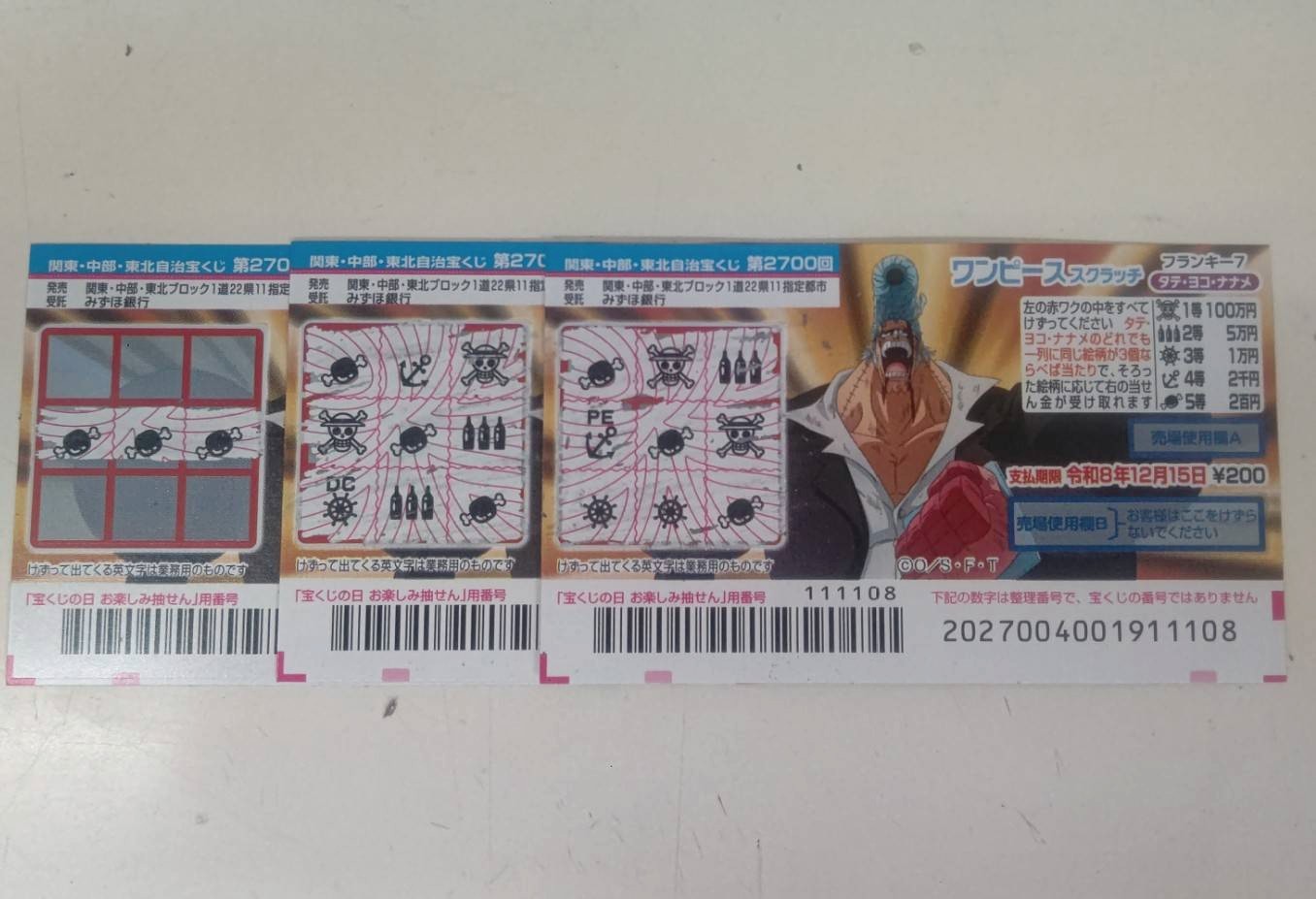 「ワンピーススクラッチ ウソップ8 トリプルマッチ」(第439回地域医療等振興自治宝くじ)