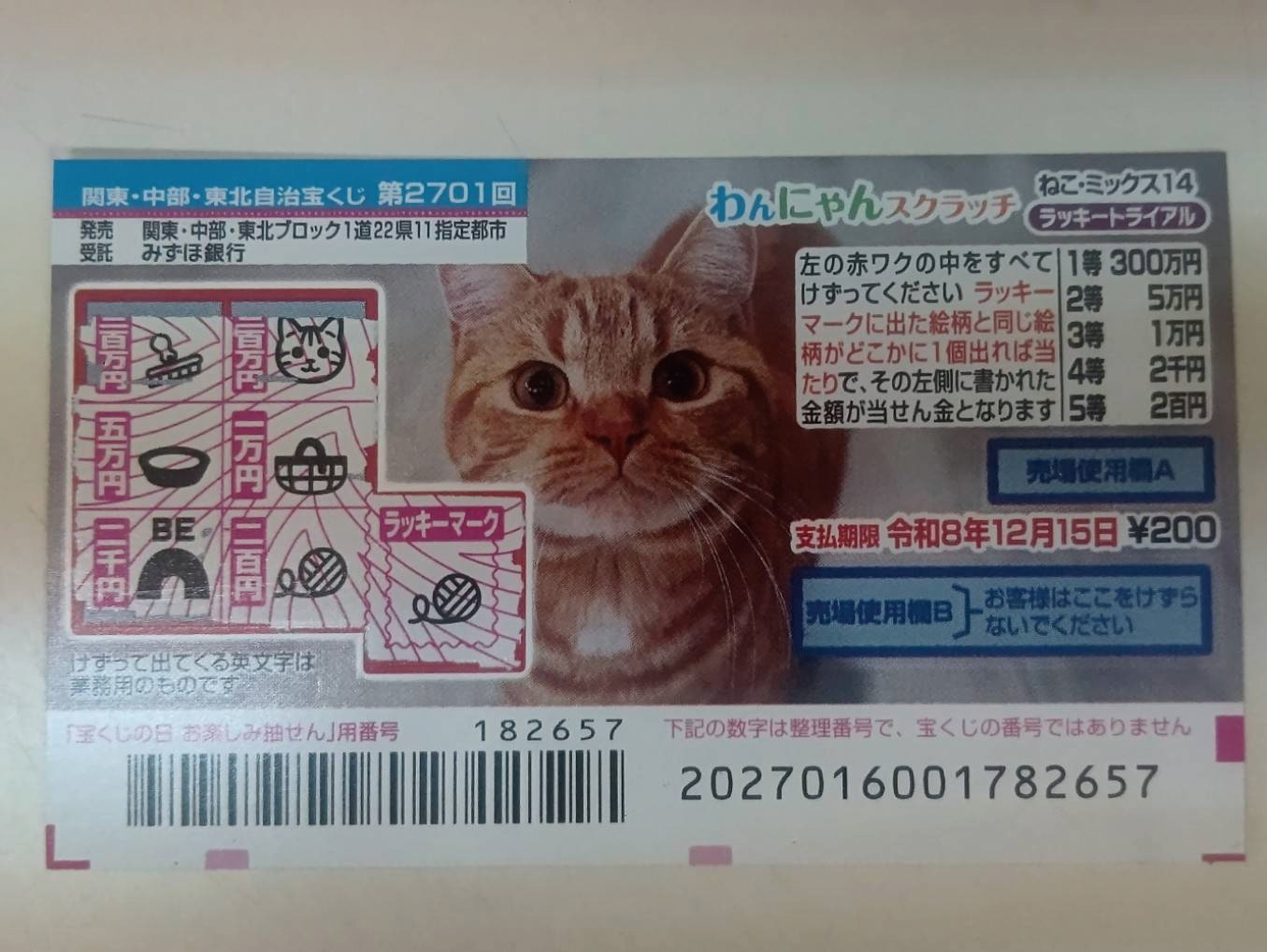NEW「わんにゃんスクラッチ ねこ・ミックス14 ラッキートライアル」(第2639回東京都)