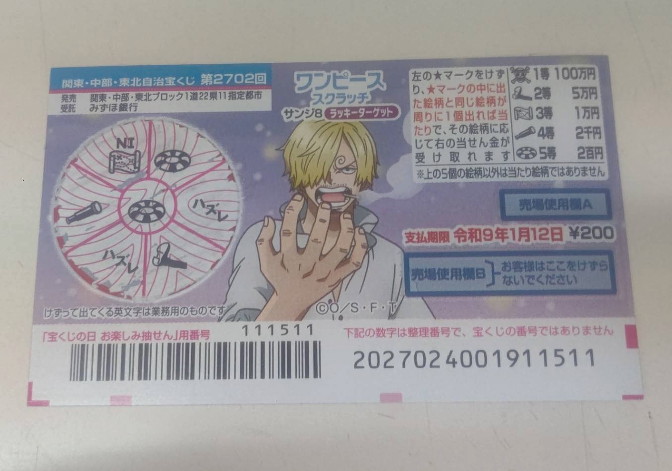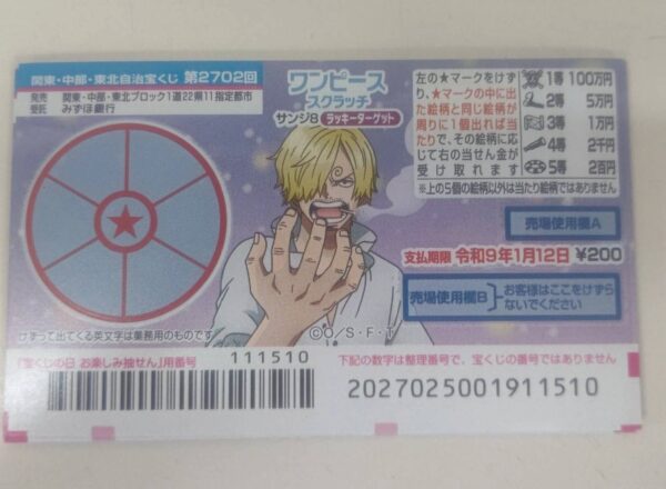 「ワンピーススクラッチ サンジ8 ラッキーターゲット」(第2640回東京都)