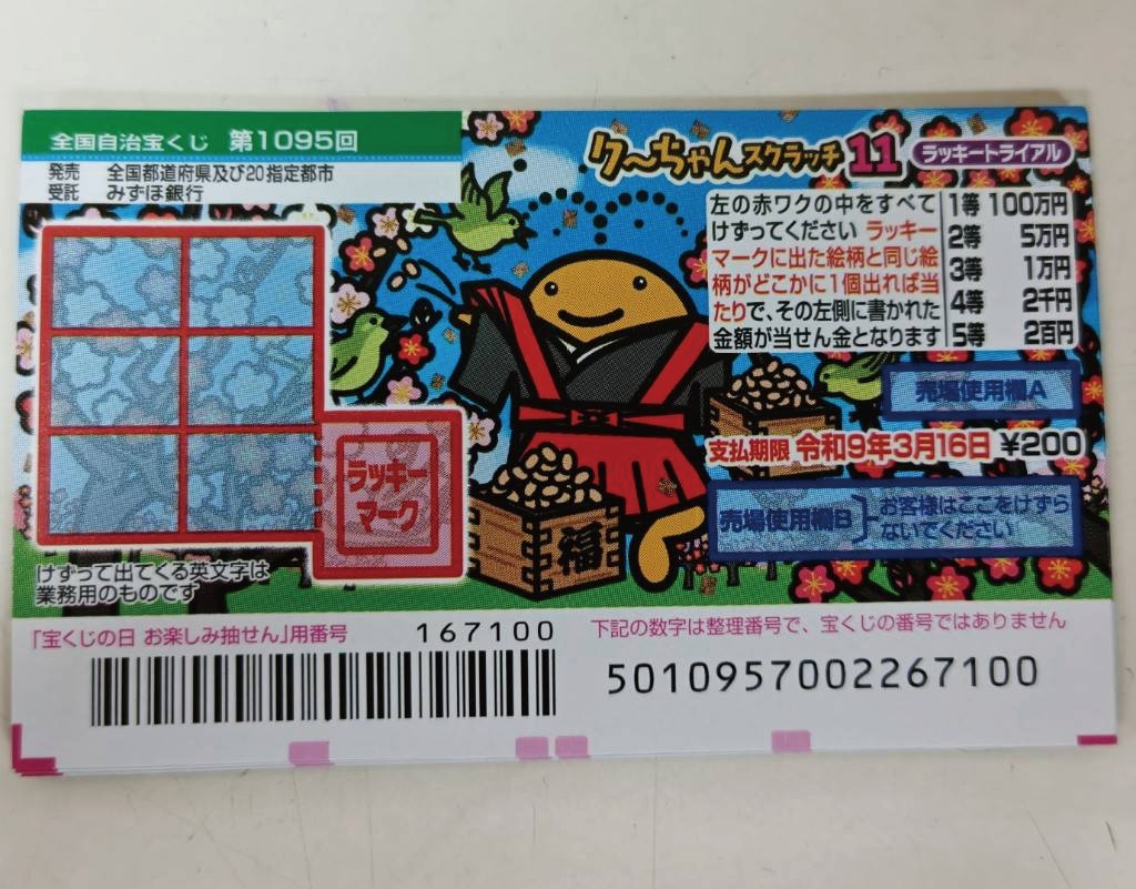 「クーちゃんスクラッチ11 ラッキートライアル」(第1095回全国)