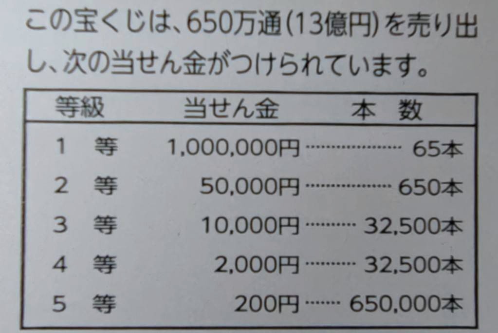 合算すると1/100以上で2,000円より上の等級が当る事になりますね