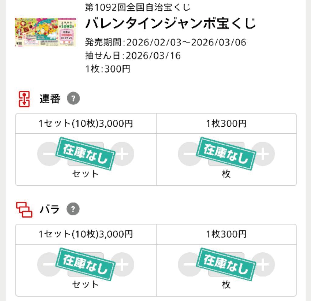 ジャンボ宝くじが売り切れてしまったので・・