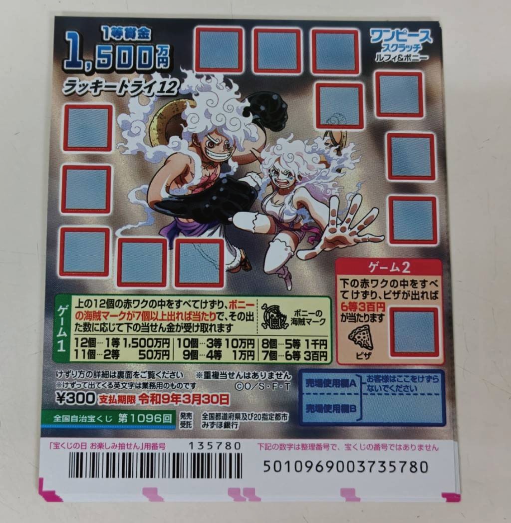 「ワンピーススクラッチ ルフィ&ボニー ラッキートライ12」(第1096回全国)