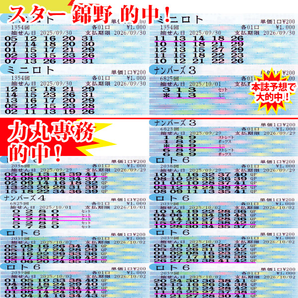 達人☆スター錦野旦の『この世に数字がある限り!』2025年10月4日更新コラムをご紹介。錦野さんと力丸専務がどのように数字を選んでいるのか、当たりの予兆はあるのか、当たるためにしていること など、ご参考にどうぞ!