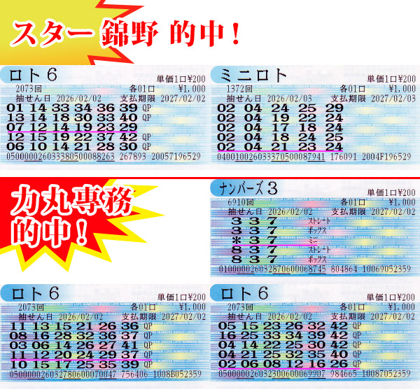 2日(月)、まずはロト6で僕が自力で5等1口ゲット! ちょっとおもしろい買い方をしてみたのですが、3口目だけ自分で選んで、あとはQP。そしたら、自分で選んだところだけ当たった! なんだかおもしろいですね♪ 対する専務はQPで5等2口当せん! すると、これでいい流れを作った専務は、続くナンバーズ3で当せん数字「037」を「337」グランドスラム狙いでミニゲット‼ さすがです!