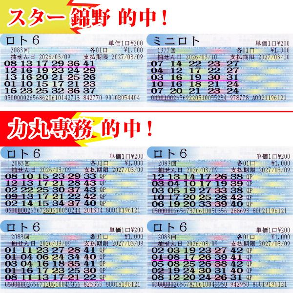 10日(火)は、僕の出番! ミニロトで4等1口を自力でゲット! いい感じです! 続くナンバーズ3では専務が当せん数字「917」を「751」グランドスラム狙いでひとつ違い!