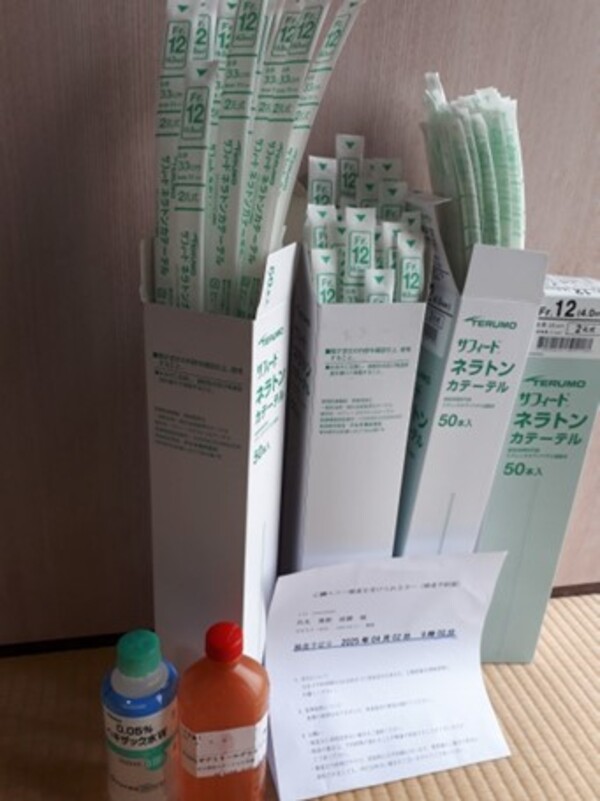 導尿セット、おしっこが出ないとき自分でカテーテルを挿入しておしっこを出していた。