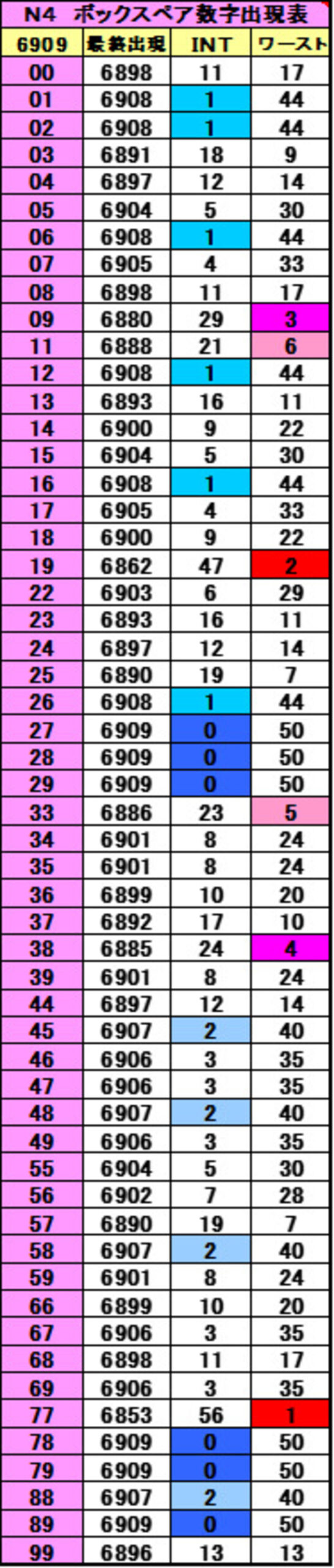 ■N4 位別未出現情報
