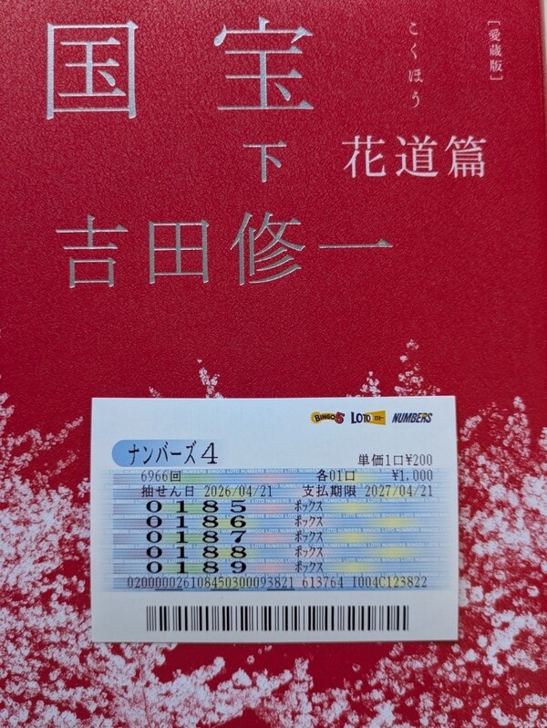 第6966回N4「0168」を「0186」ボックス当せん♪